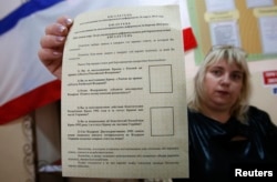 «Количество голосов участников общекрымского референдума, поданных в поддержку вопроса «Вы за воссоединение с Россией на правах субъекта Российской Федерации?» составляет 1 миллион 233 тысячи два человека, что в процентном отношении – девяносто шесть и 77 сотых процента», – заявляет глава подконтрольного России ЦИК Крыма Михаил Малышев.