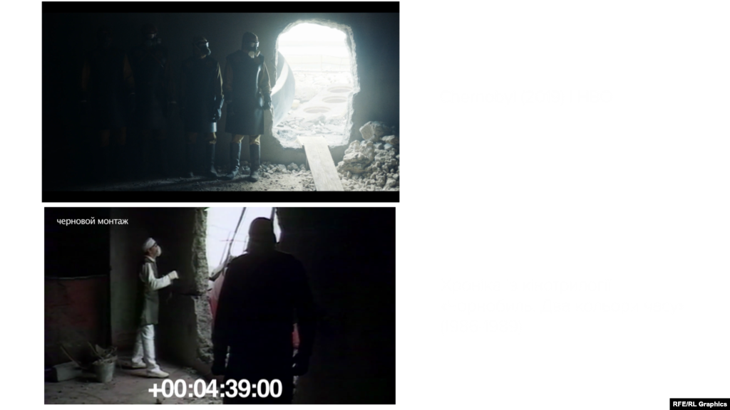 Радіо свобода порівняла планів із серілу «Чорнобиль» (2019) від HBO та кінотрилогії «Чорнобиль.Два кольори часу» (1986-1988) створеної українськими документалістами Ігорем Кобрином, Хемом Салгаником та Юрієм Бордаковим.