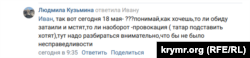 «Сегодня годовщина депортации крымских татар», – уводит обсуждение в сторону Алексей Грек. Некоторые комментаторы возмущаются недоказанными обвинениями коренного народа.