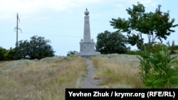 Первый памятник из бута, облицованного крымбальским камнем, установили в 1904 году к 50-летию сражения. В годы Второй мировой он был разрушен, сохранились цокольная часть и отдельные фрагменты. Восстановлен памятник был на прежнем месте в 2004 году.