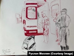 Руслан Меллин – врач в отделении челюстно-лицевой хирургии Кузбасской клинической больницы (Россия), на базе которой в период пандемии организовали ковидный госпиталь. Между сменами Руслан рисует свои рабочие будни – говорит, так легче пережить происходящее. Сразу после окончания 17-дневной смены он дал интервью Сибирь.Реалии.