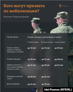 "Всем офицерам, прапорщикам, мичманам, сержантам, старшинам, солдатам и матросам запаса, проживающим постоянно на территории Республики Татарстан, имеющим мобилизационные предписания или получившим персональные повестки военных комиссариатов муниципальных образований, явиться в сроки и пункты, указанные в персональных повестках, а в случае неполучения персональных повесток прибыть в сроки и пункты, указанные в мобилизационных предписаниях. Гражданам, пребывающим в запасе, временно проживающим на территории РТ, немедленно убыть к месту постоянного жительства и прибыть в пункты, указанные в мобилизационных предписаниях, а при невозможности — в военный комиссариат по месту состояния на воинском учете", — говорится в документе. При этом ограничения по возрасту в приказе не обозначены.