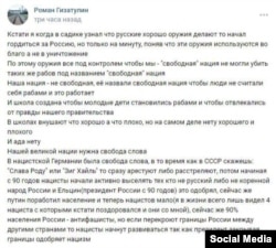 "В 13 лет я палкой по веткам х.ячил и карбид взрывал … а тут нацизм , мировой порядок , свобода слова … п..дили мало дома", – пишет Gnake.