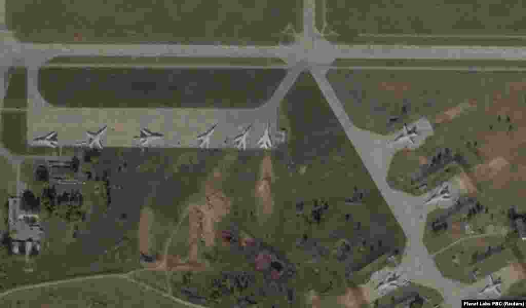На супутникових знімках російської авіабази «Бєлая» в Іркутській області до і після удару українських безпілотників під час операції СБУ «Павутина» видно пошкоджені або знищені літаки.