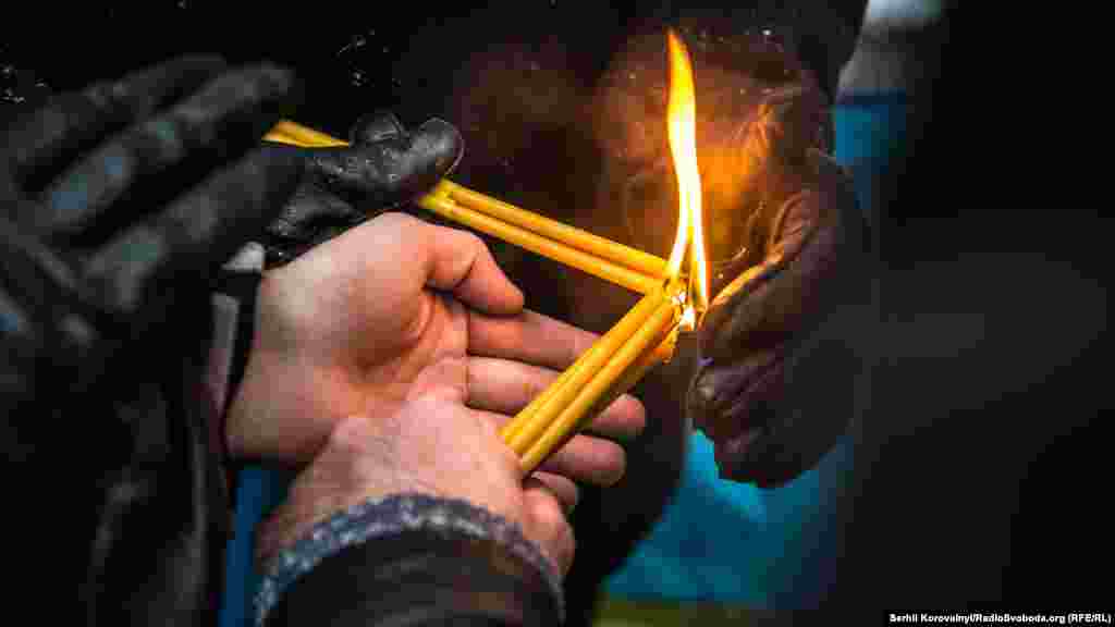 После акции участники зажгли свечи и минутой молчания почтили память погибших на Майдане и в зоне АТО соотечественников