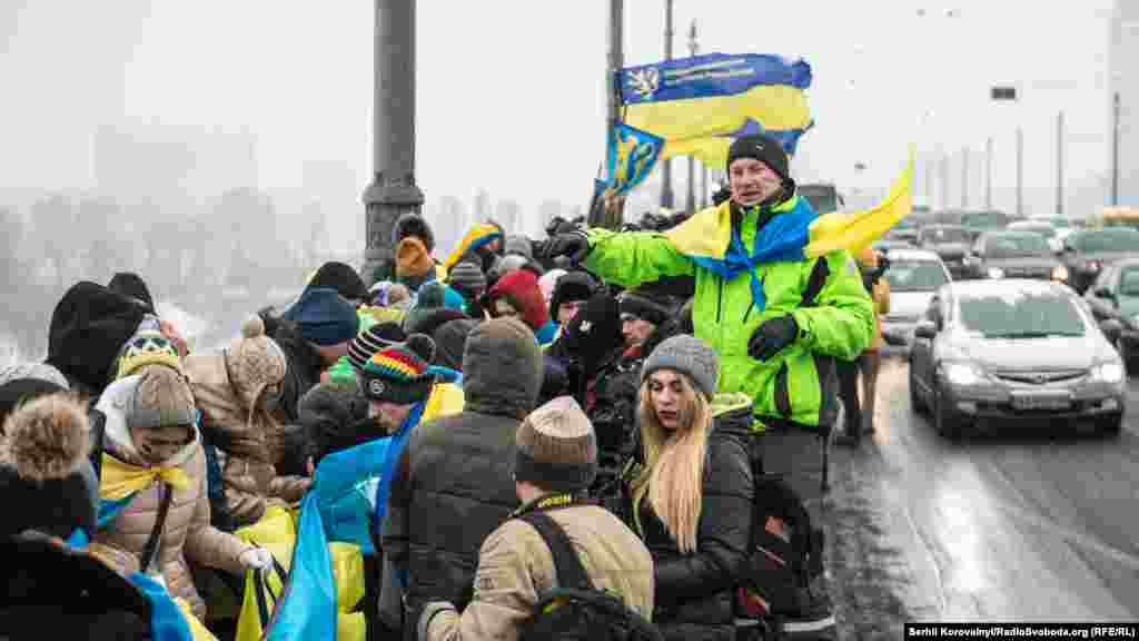 Украинцы соединили два берега Днепра желто-голубым флагом (фотогалерея)