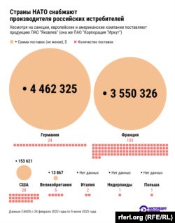 Компании из Франции, Германии, США и ряда других стран НАТО продолжают поставлять в Россию запчасти и детали для разработки и производства самолетов. Американская некоммерческая организация C4ADS, занимающаяся сбором и анализом информации в сфере обороны, предоставила "Системе" таможенные данные импорта ПАО "Яковлев" (она же ПАО "Корпорация "Иркут") за 2022 и 2023 годы, из которых следует, что общая стоимость этих поставок превысила 8 млн долларов.