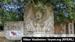 Изображение колхозницы на плите, которая держит над головой охапку колосьев, напоминает отдельных современных украинских политиков. Стоит приглядеться к прическе крестьянки.